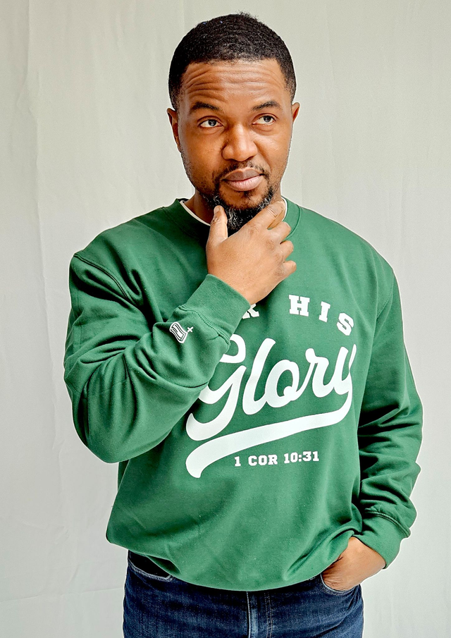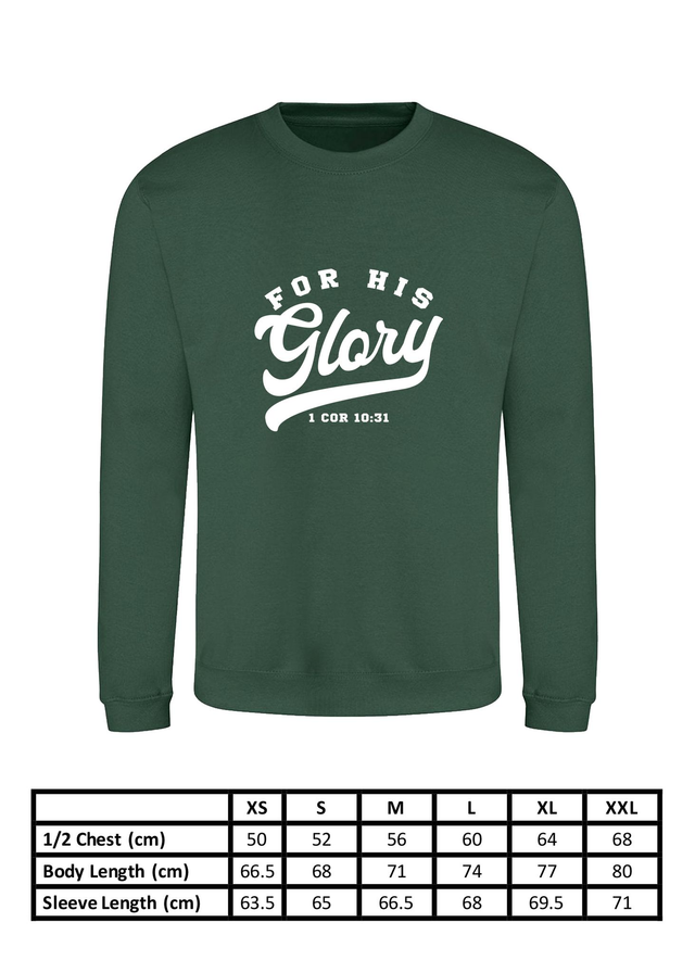 For His Glory Bottle Green College Sweatshirt - 1 Cor 10:31