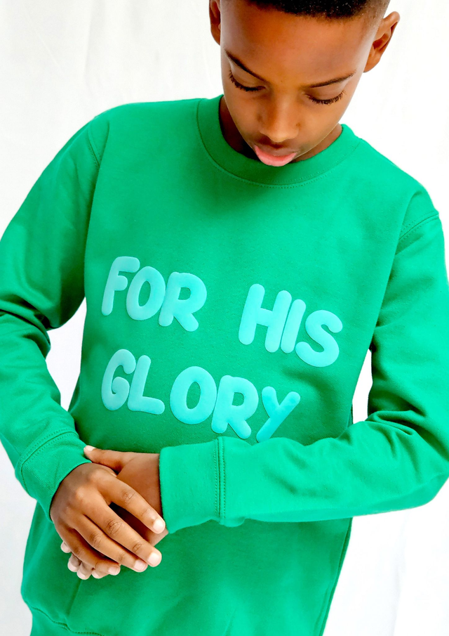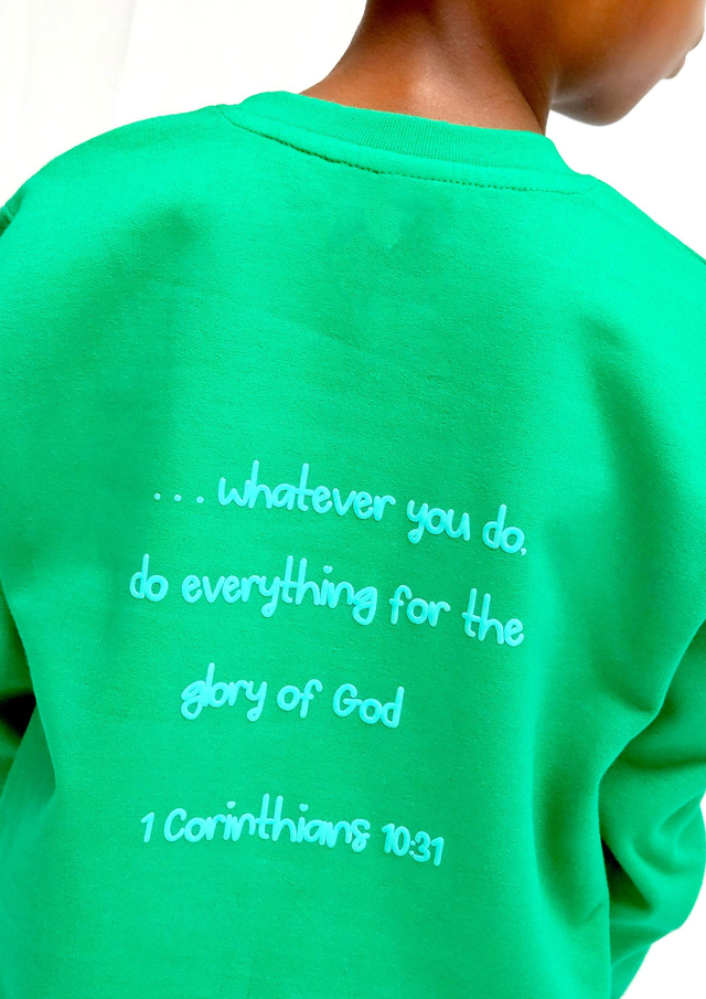 For His Glory Green Puff Sweatshirt - 1 Cor 10:31 [KIDS]