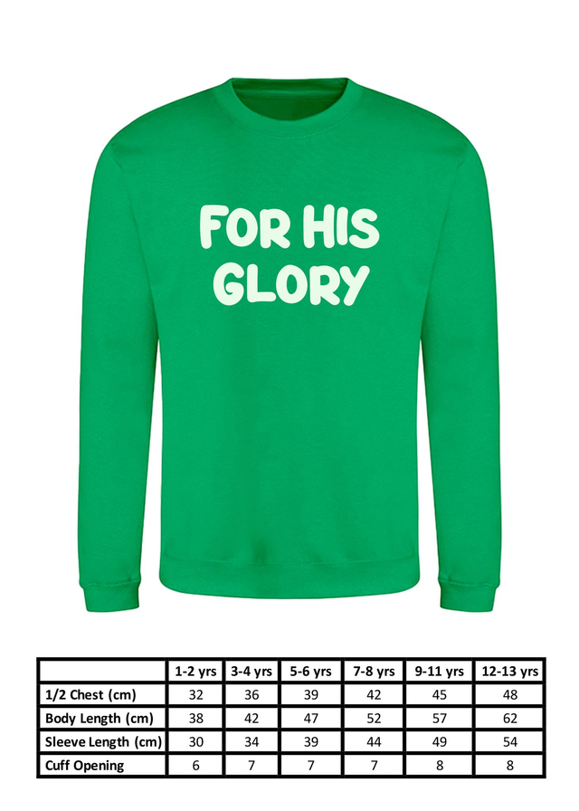 Featuring a 'For His Glory' puff print text design on the front and 1 Corinthians 10:31 printed on the back, this crew-neck sweatshirt has a classic design and features a ribbed collar, cuffs and hem in a soft cotton-faced fabric.